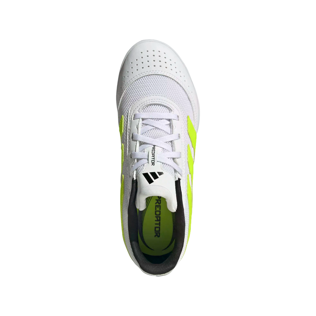 Discover the difference between aiming to score and knowing you will with adidas Predator boots that are crafted for goals. Created for fast-moving futsal, these juniors' Club football boots have a ventilating mesh upper that's lined with soft fabric and overlaid with resilient TPU. Underneath, a rubber outsole grips flat indoor surfaces without leaving a mark.