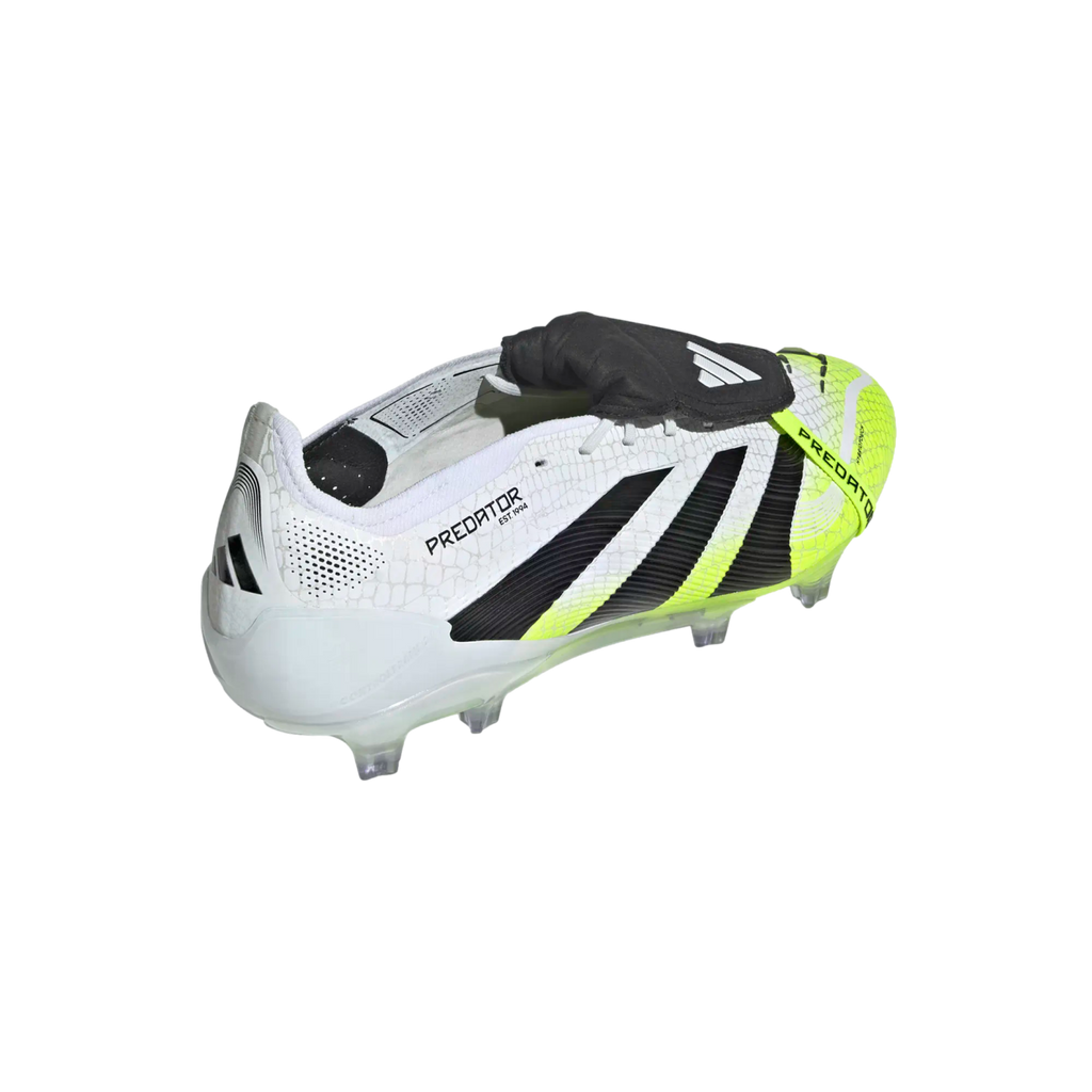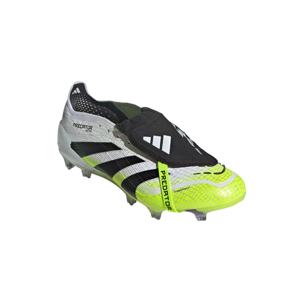 Discover the difference between aiming to score and knowing you will with adidas Predator cleats that are crafted for goals. These Elite cleats have a HybridTouch upper with a fold-over tongue and rubber Strikeskin fins that help provide perfect contact with the soccer. The Controlframe 2.0 firm ground outsole and adidas PRIMEKNIT collar are designed to give you a stable stance when the goal's at your mercy.