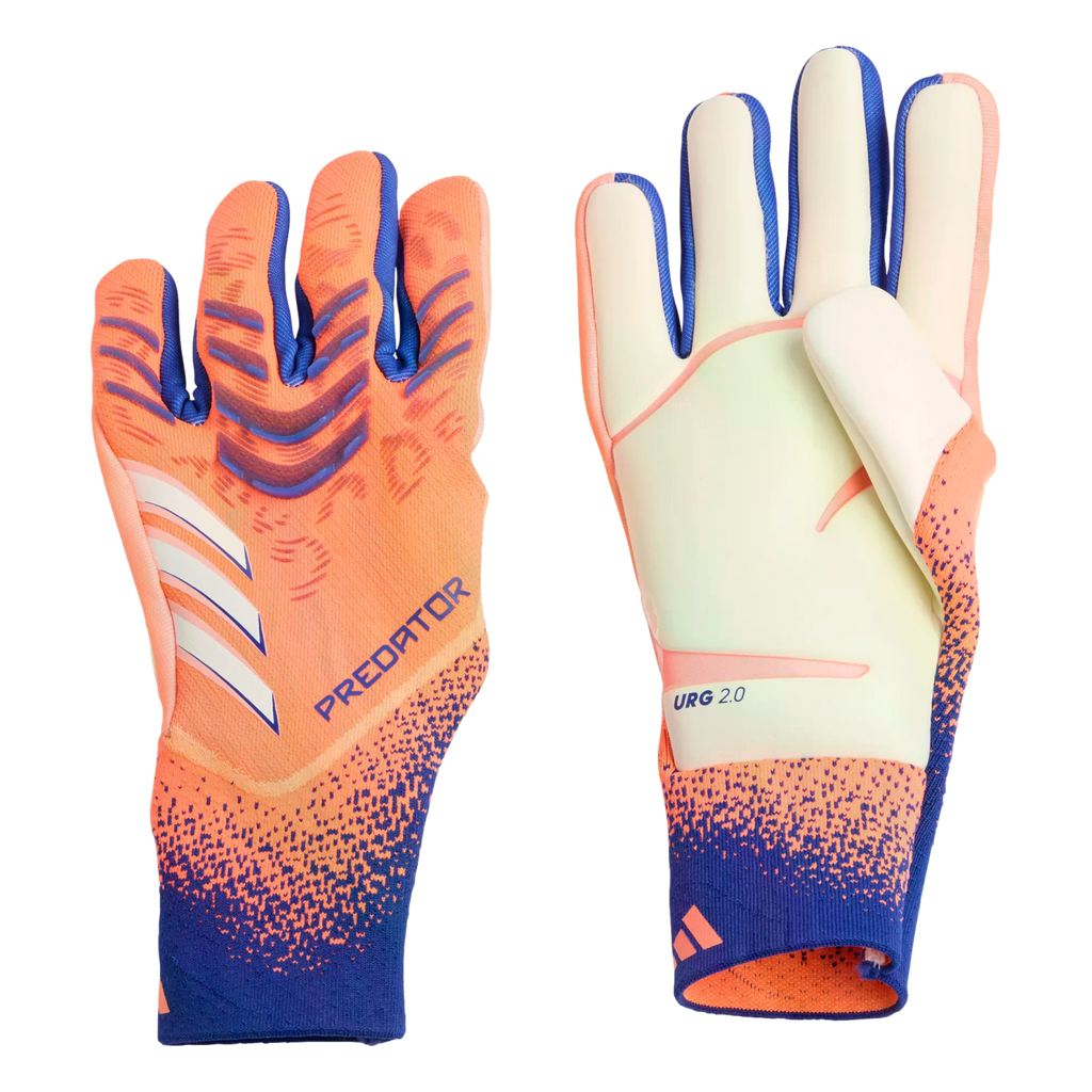Stop every shot in these adidas Predator Pro goalkeeper gloves. Engineered for standout match day performances, they employ grippy URG 2.0 latex palms and a snug, negative finger cut. Their adaptive knit backhand includes silicone elements for pinpoint punching. The strapless entry provides a rock-solid but natural-feeling fit at the wrist.