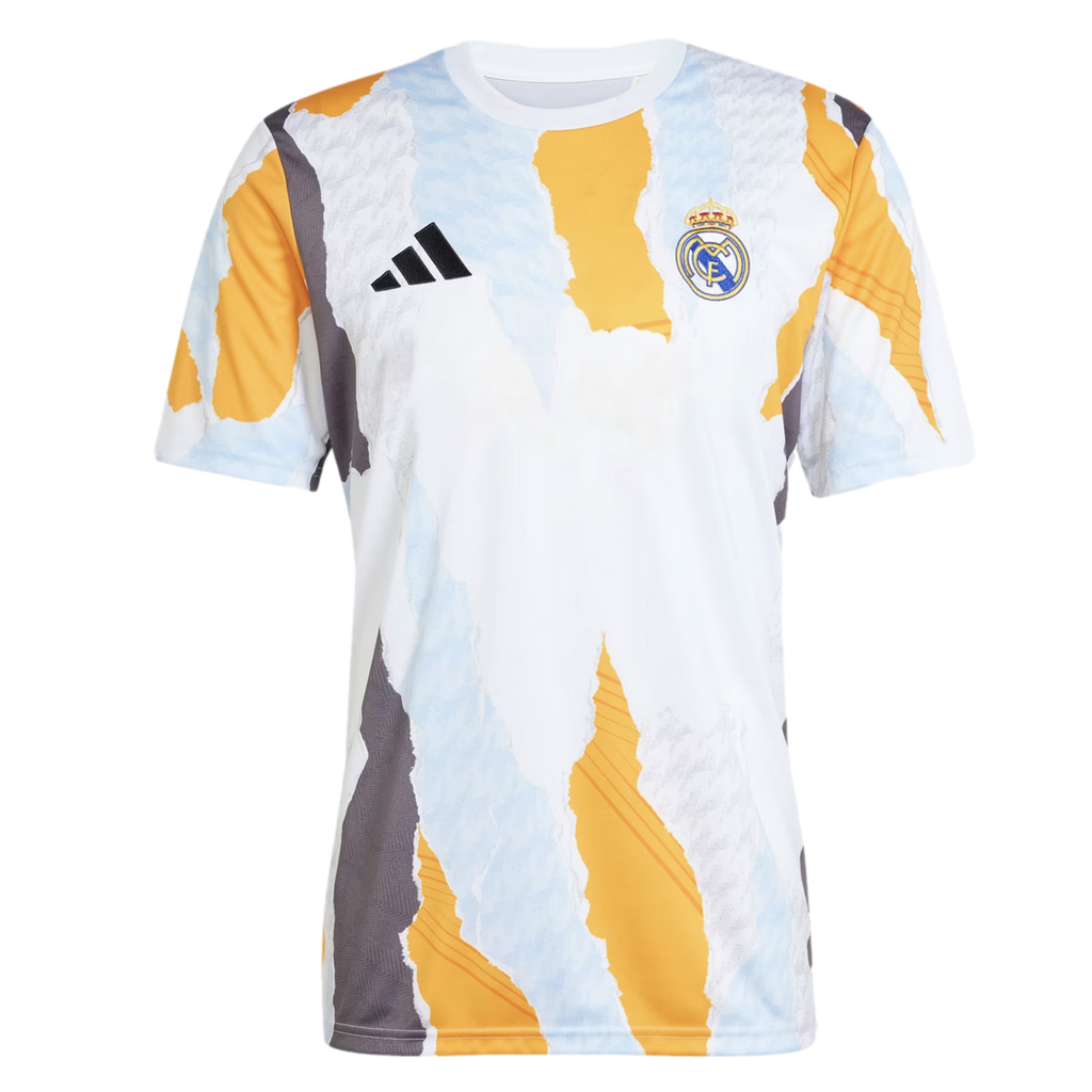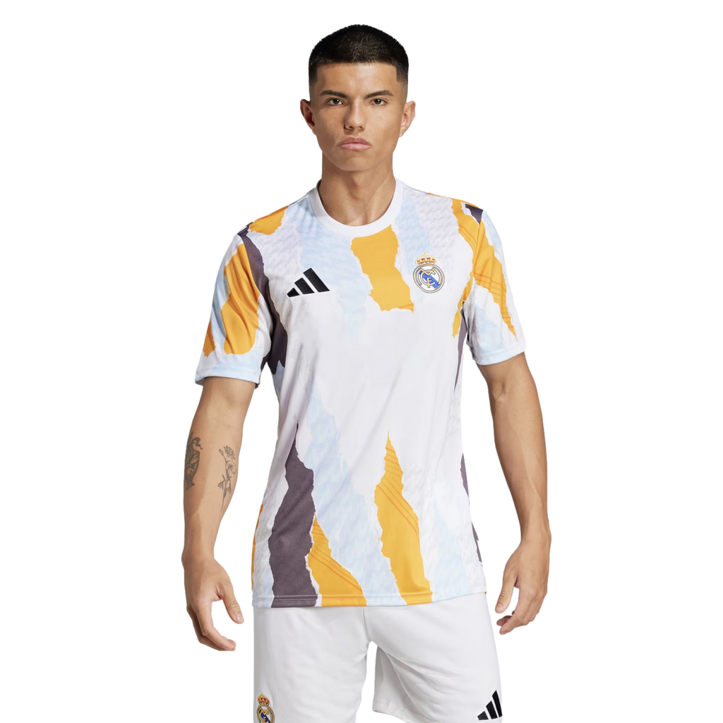 Represent Real Madrid's 24/25 season in an eye-catching way. The top players wear before games, this adidas jersey blends design elements from all three of the club's match jerseys into one iconic look. Behind the scenes, AEROREADY controls moisture to keep you dry and comfortable in all your favourite football colours. This product is made with 100% recycled materials. By reusing materials that have already been created, we help to reduce waste and our reliance on finite resources and reduce the footprint of the products we make.