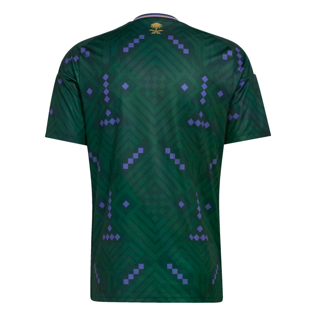 Inspired by the country’s rich cultural heritage, the Saudi Arabia 26 Home Shirt combines traditional art with a modern twist. The dark-green base is accentuated with hits of purple, creating a striking look. This shirt is crafted with Climacool breathable materials that aid cooling for match-day comfort. The interlock fabric further provides a comfortable fit, while the slim design offers a sleek silhouette. The embroidered adidas logo and club crest are displayed proudly with more than a touch of class. Whether you're cheering from the stands or playing a match, show your support for Saudi Arabia in style with this authentic shirt.
