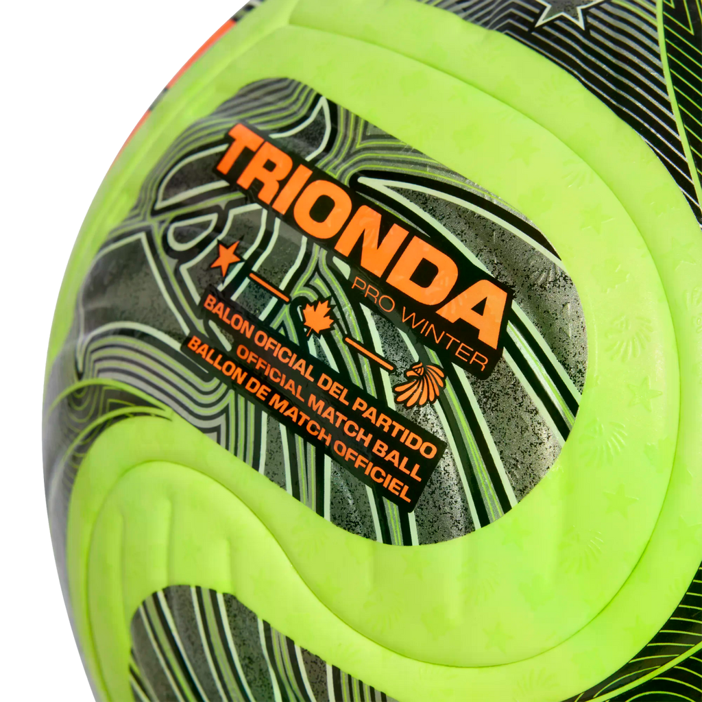 The FIFA World Cup 26™ Trionda Pro Winter Ball is designed for those who demand precision and performance on the field, all year round. With a textured surface, this ball offers improved flight stability and precision, helping to maintain accuracy for every kick. Its fluorescent base color enhances visibility in winter conditions including reduced light and bad weather. The thermal bonded seamless surface provides a more predictable trajectory, better touch, and lower water absorption, allowing you to focus on your game without distractions. Achieving the highest FIFA Quality Pro rating, this ball has passed rigorous tests on weight, water absorption, shape, and size retention. Trust in adidas to deliver excellence with this winter ball that combines tradition with innovation.