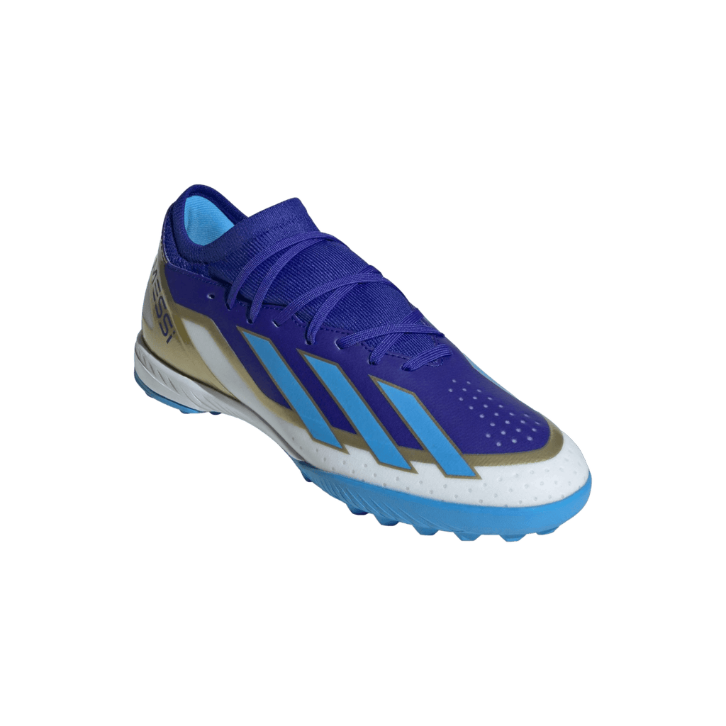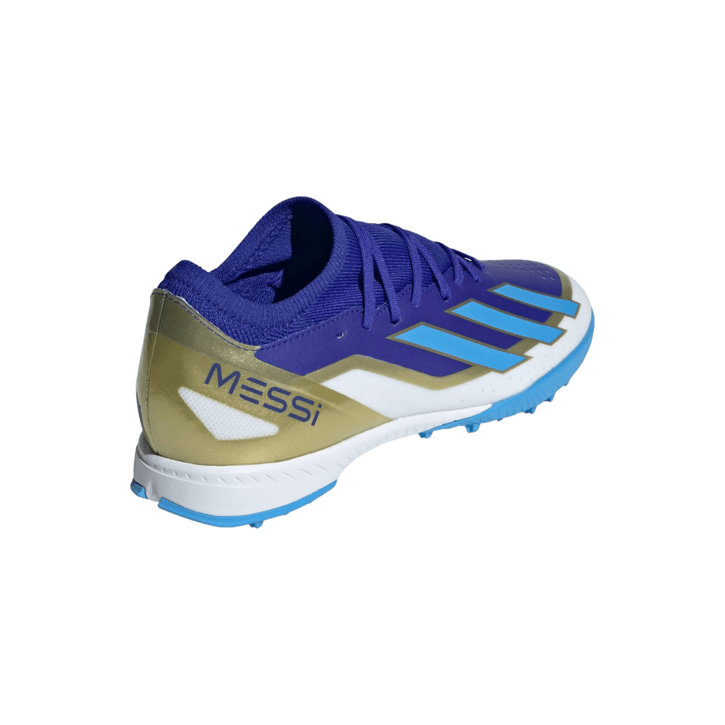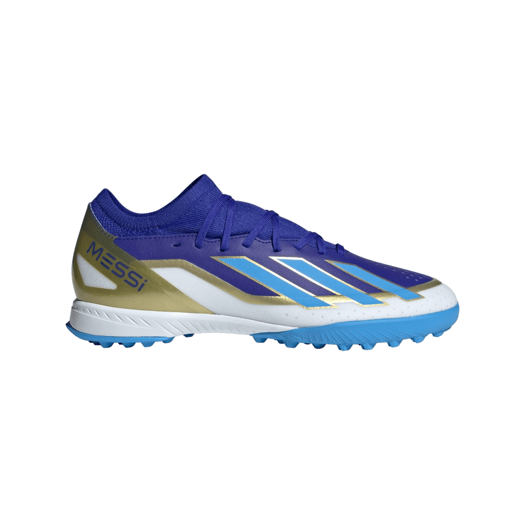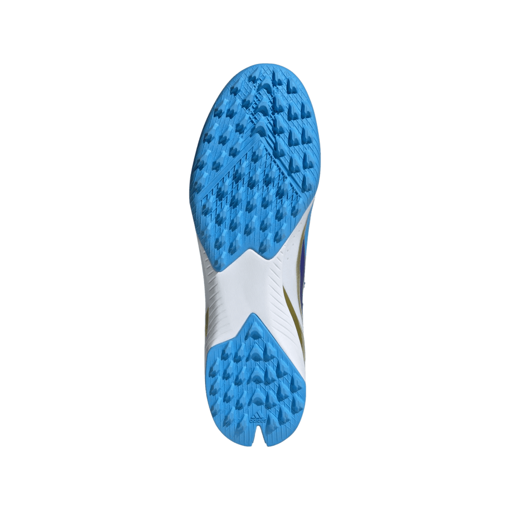 Celebrate a soccer genius in the colors of his world champion team. Keeping you stable at full tilt on short-bladed synthetic fiber, these adidas boots sit on a lug rubber artificial turf outsole and soft EVA midsole. Featuring extra layers only where reinforcement is required, their coated textile upper comes with a flat-knit collar for solid lockdown. This product features at least 20% recycled materials. By reusing materials that have already been created, we help to reduce waste and our reliance on finite resources and reduce the footprint of the products we make.