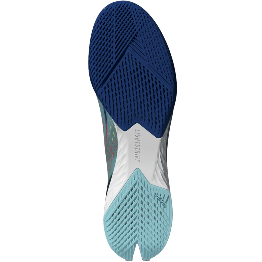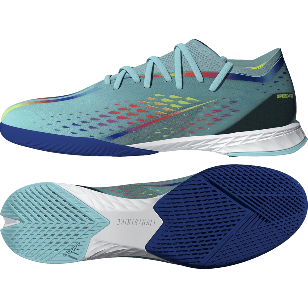 Features/Benefits: Time and space. It's all relative when you play in a different dimension. Open the gateway to multidimensional speed in adidas X Speedportal. Sleek and super-comfortable, these indoor soccer shoes support instant reactions with a low-profile Lightstrike midsole and a grippy rubber outsole. Part of their foot-hugging Speedskin upper, an adaptive adidas PRIMEKNIT collar and lightweight carbon heel lock team up to keep you strapped in for light-speed sprints and physics-defying sidesteps.