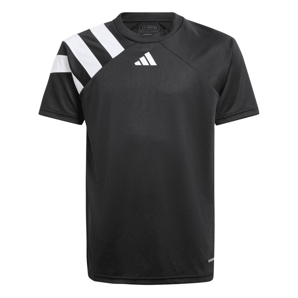Find your football look in this juniors' Fortore 23 jersey. Created to keep your team standing out on the pitch, this eye-catching shirt shows off a design inspired by '90s adidas Equipment style. Moisture-absorbing AEROREADY keeps you dry, and the smooth interlock fabric offers a lightweight feel to ensure your mind stays on the match. Made with 100% recycled materials, this product represents just one of our solutions to help end plastic waste.