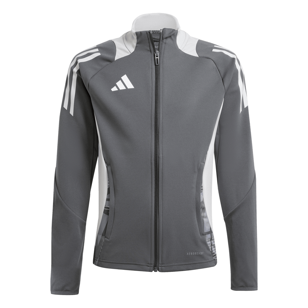 Fulfil your football potential. This juniors' jacket from adidas is built for the perpetual motion of the training pitch. Keeping you dry with moisture-wicking AEROREADY, it's an ideal extra layer for chilly evening sessions. Its zip pockets are ideal for storing energy bars for on-the-go refueling. That comfortable piqué fabric build means you'll want to leave it on for the journey home. This product is made with 100% recycled materials. By reusing materials that have already been created, we help to reduce waste and our reliance on finite resources and reduce the footprint of the products we make.