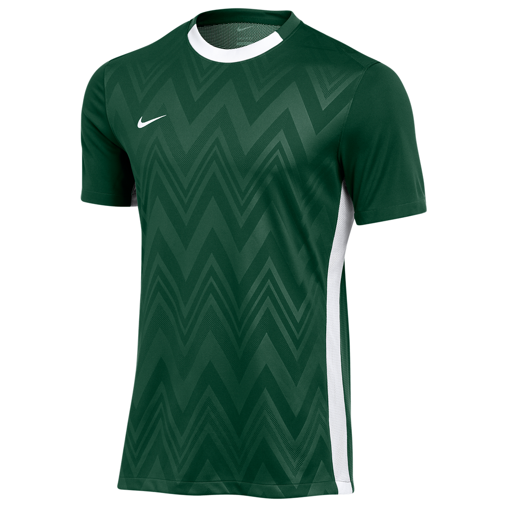 The Nike Dri-FIT Challenge V Jersey is designed to keep your players cool and comfortable through 90 minutes and beyond. Mesh on the back and side panels offer breathability where athletes need it most. Body and sleeves are a Nike Dri-FIT knit fabric that moves sweat away to help keep players dry. This top is made with 100% recycled material. Side panel construction uses a more efficient pattern to help reduce material waste. Slim fit for a tailored look and feel.