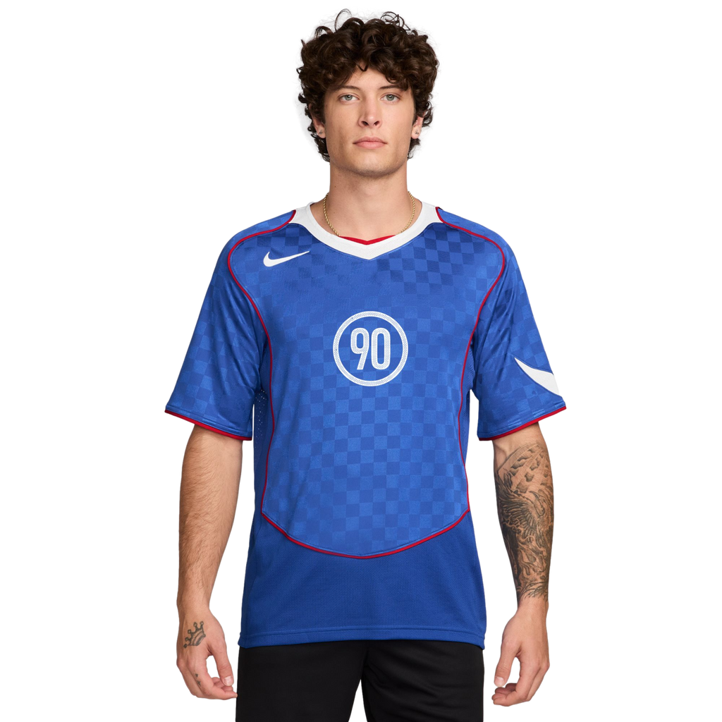 Channeling the energy of the early-2000s, this Total 90 jersey is a throwback to the kits worn by some of the era's biggest clubs and national teams. Curving panels of sweat-wicking mesh and piping create a look that's game ready in the stands and the streets.