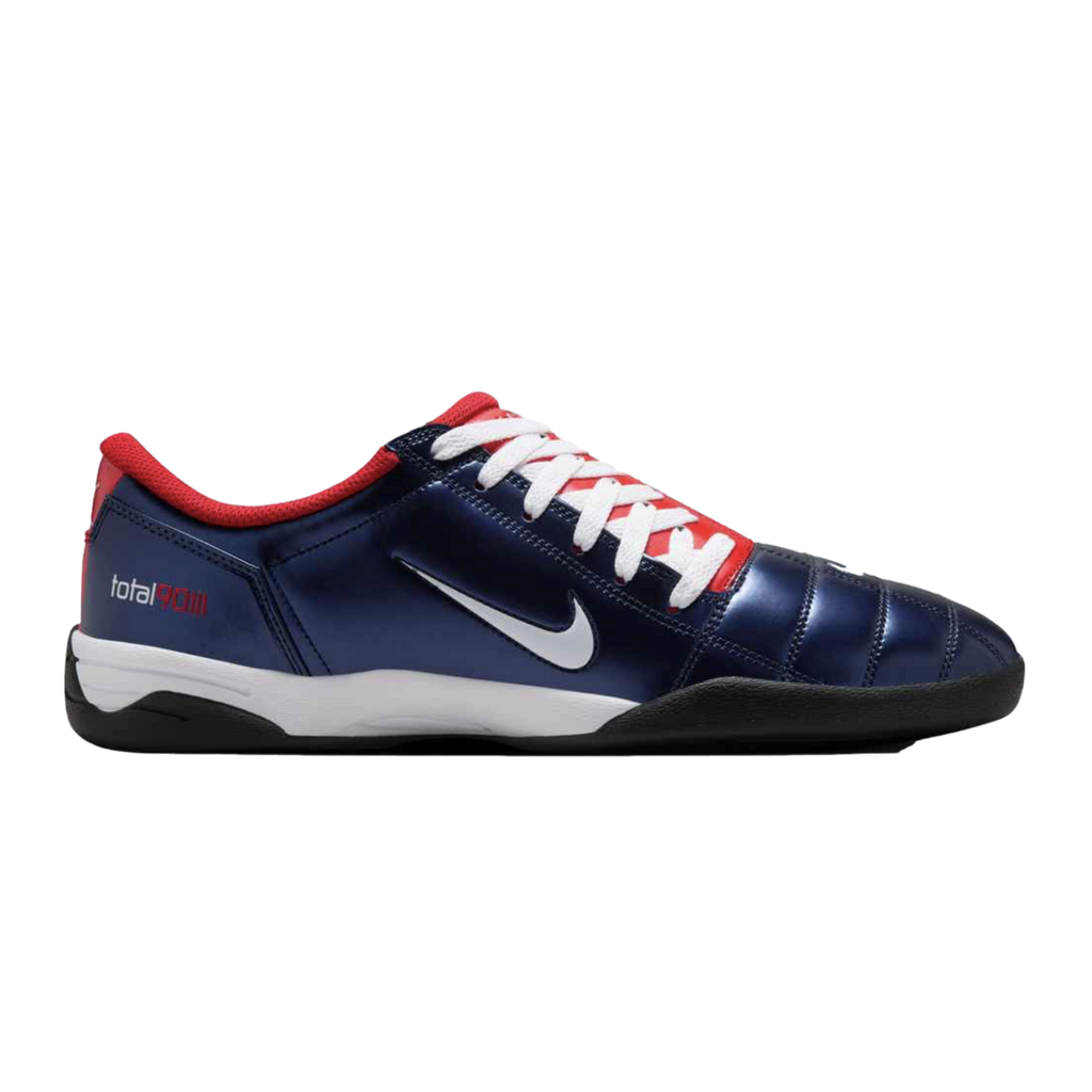 The Total 90 is back. Delivering Y2K nostalgia, this reimagined football classic features the original quilted upper and asymmetrical lacing. We swapped out the cleated sole for a flat rubber one ready for the streets.