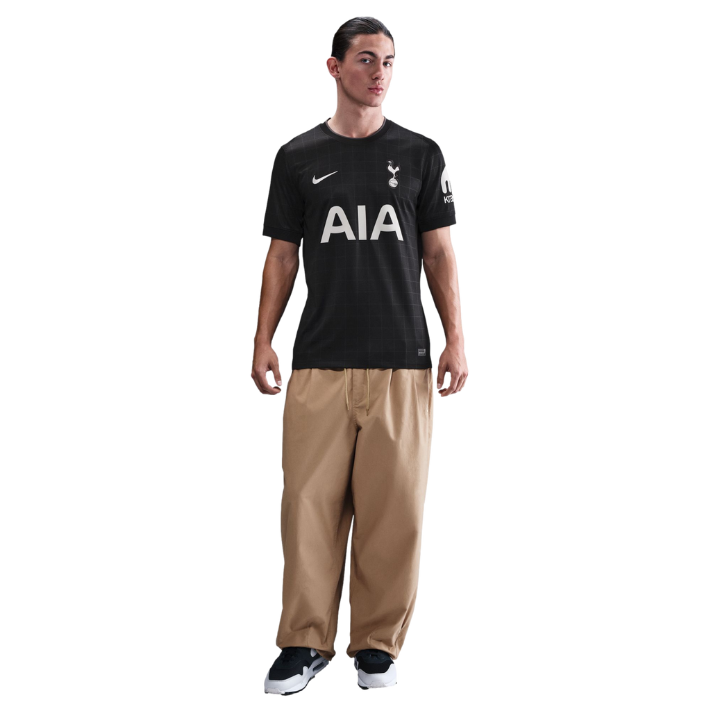 Tottenham Hotspur's 2025/26 Away uniform welcomes you to match day in the year 2082. This London-inspired battle armor uses tonal blacks and cutting-edge trims to create an innovative, stealthy look that the enemy won't see coming.