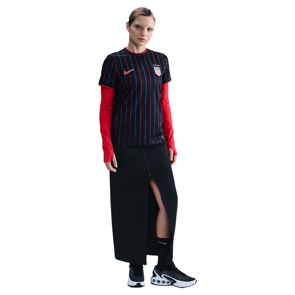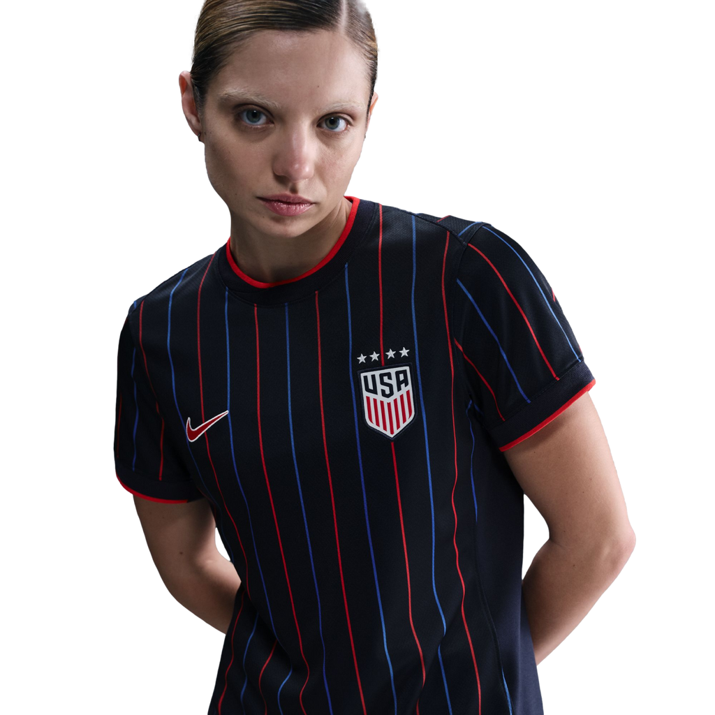 Since 1985, the USWNT has been the guiding light for the future of the game. Celebrate four stars and 40 years of progress with the USWNT Away kit. The stripe graphic pulsating stardust embodies the radiant heartbeat of the team as they continue to inspire future generations.