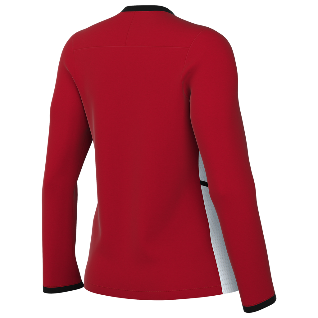 This long-sleeve soccer top features stretchy, sweat-wicking fabric with mesh side panels, helping keep players dry and comfortable on and off the field. A zipper from the neck opening along the shoulder seam keeps the front neck clear of distraction. This product is made with 100% recycled polyester fibers. Side panel construction uses a more efficient pattern to help reduce material waste.