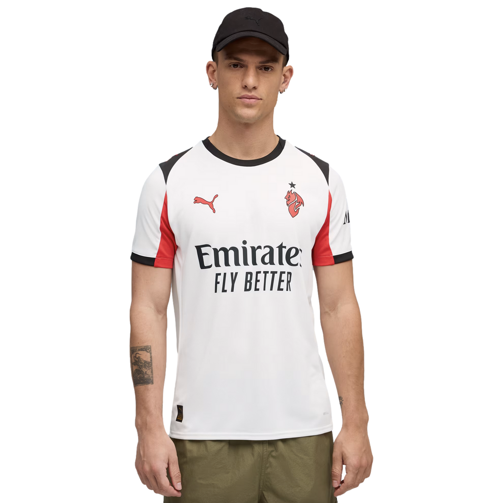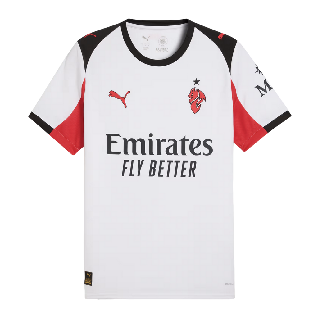 At first glance, it looks pure. Second glance? Pure fire. The 25/26 Away Kit pairs classic white with fiery red and black accents for an away look that couldn’t be more AC Milan if it tried. At its heart, the iconic Diavoletto emblem from the '80s is a nod to the club’s storied past, made for those who carry the AC Milan legacy not only on their shirt but in their soul.