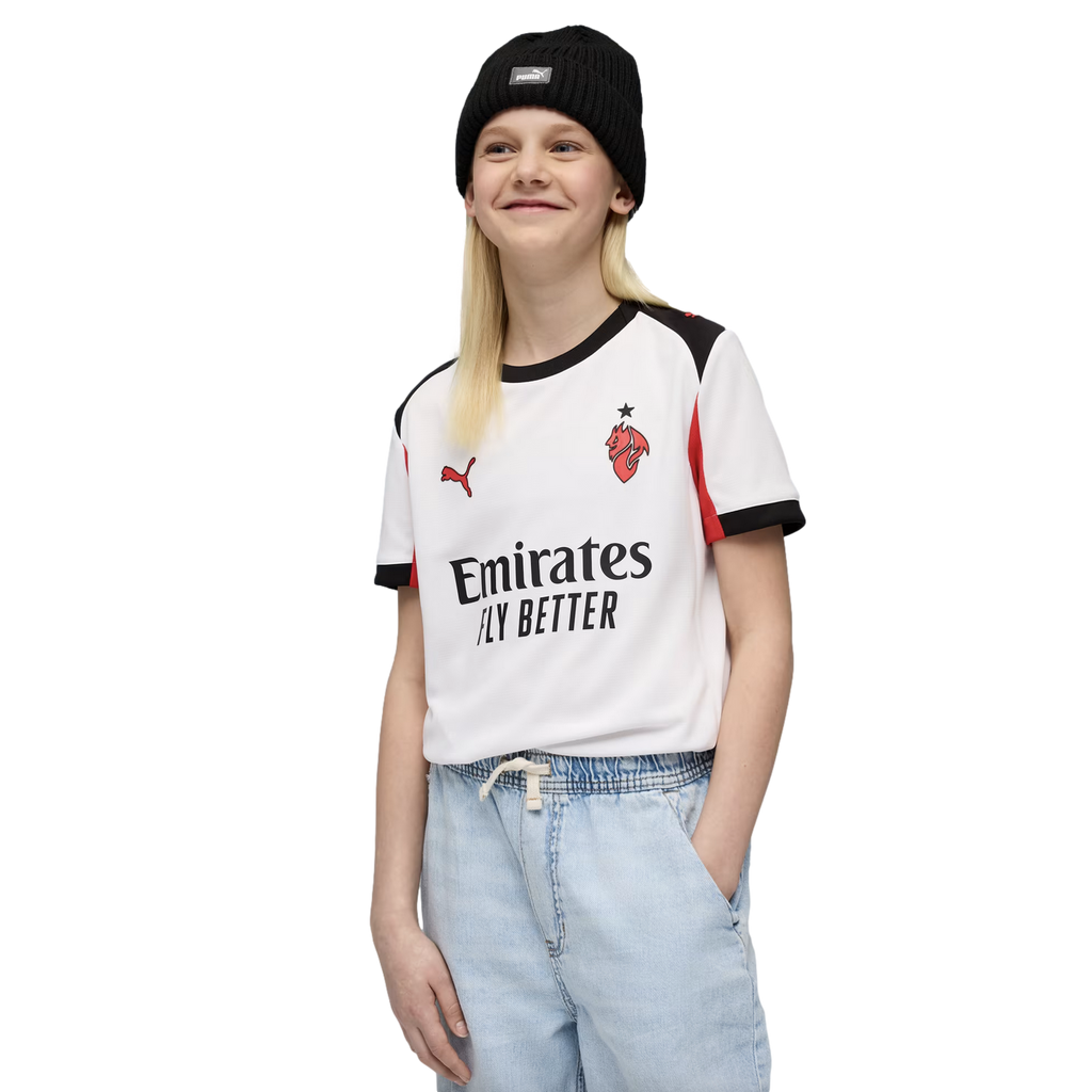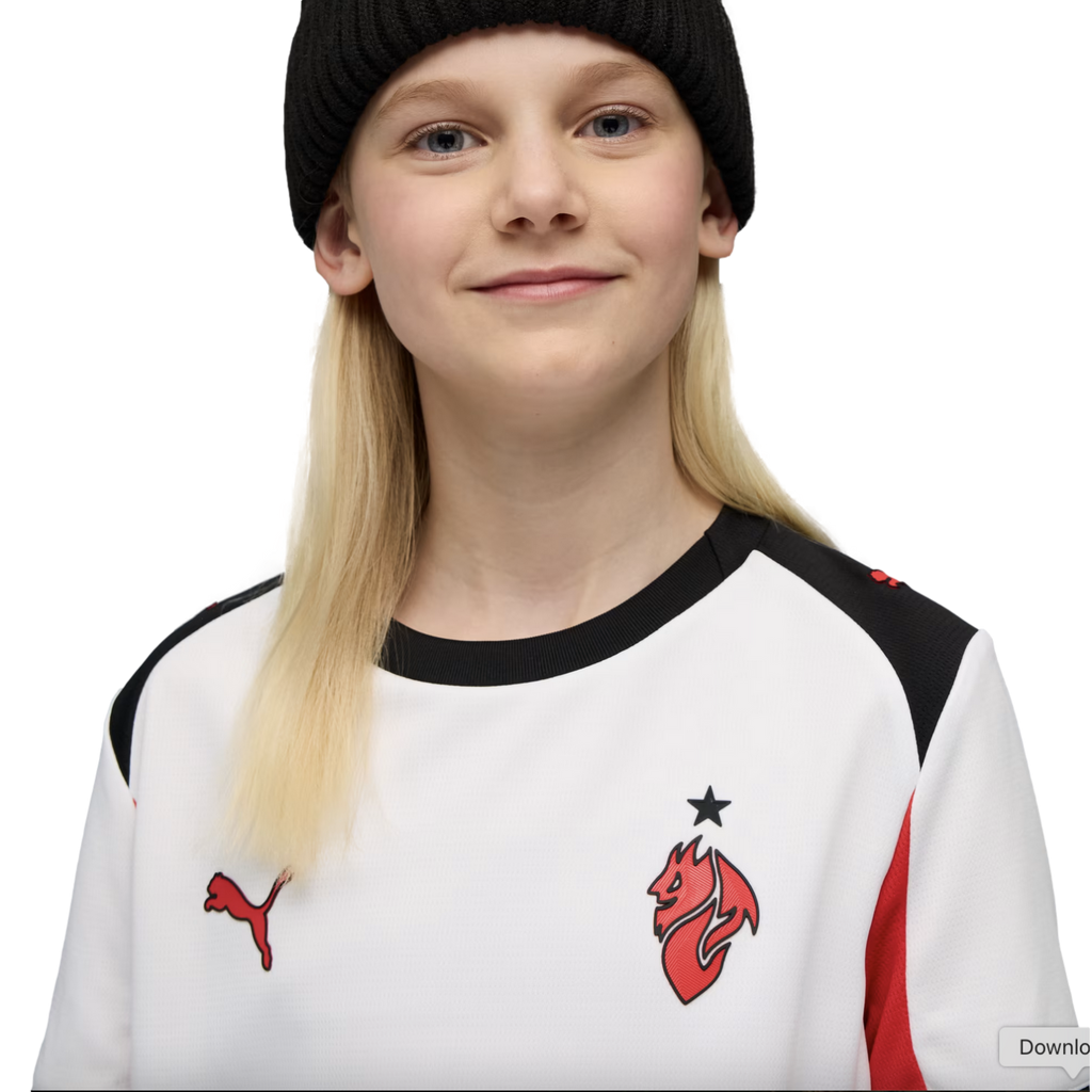 At first glance, it looks pure. Second glance? Pure fire. The 25/26 Away Kit pairs classic white with fiery red and black accents for an away look that couldn’t be more AC Milan if it tried. At its heart, the iconic Diavoletto emblem from the '80s is a nod to the club’s storied past, made for those who carry the AC Milan legacy not only on their shirt but in their soul.
