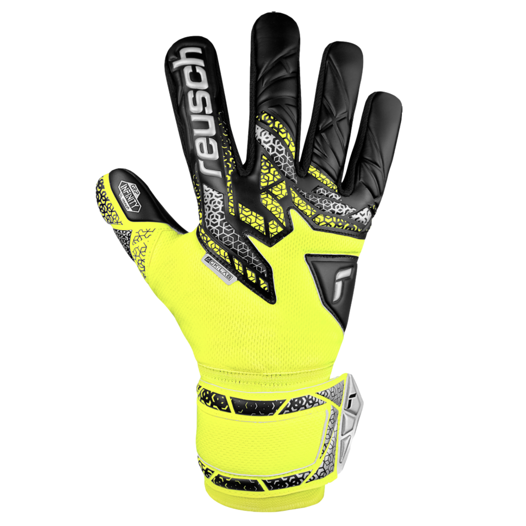 Dominate artificial turf with the Attrakt Infinity NC. Powered by Reusch Grip Infinity latex, this glove delivers uncompromising durability combined with very good grip properties. The Negative Cut ensures a second-skin fit, enhancing ball control for a natural feel. Elevate your game on every surface with your new best companion.